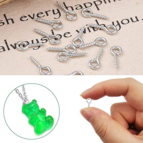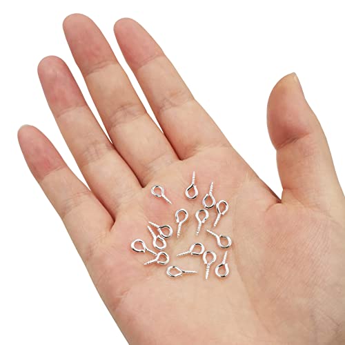1000 PCS lyfLux 10 mm x 5 mm Mini cerchio in metallo con gancio a vite con gancio, viti con occhiello in argento filettate per la creazione di fai da te (argento)