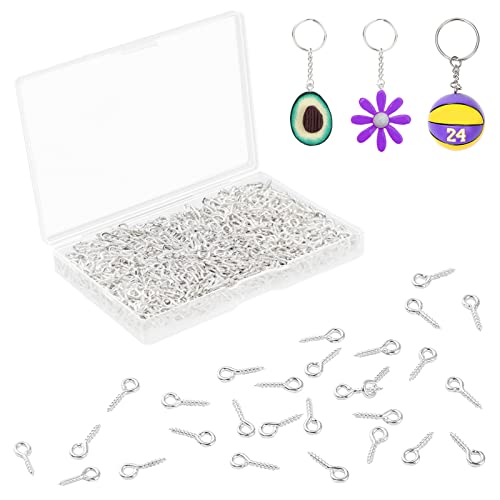 RICEVERAI: 1000 pezzi 10 mm x 5 mm con occhiello per vite con piolo in metallo, ganci per viti a occhiello per la creazione di fai da te (argento).