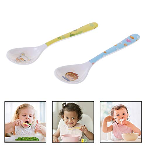 Lyguy Cucchiaio, Cucchiaio Dritto Testa Alimentazione Piatti Posate Piatti Neonati Bambini Bambini Alimentazione sicura Forniture per l'apprendimento 1 Pezzo Colori a Caso 3#
