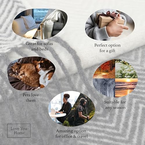 LYHome Coperta in Lana Merinos - Copriletto Plaid per Letto Divano, Singolo Una Piazza e Mezza Matrimoniale, Coperte Per Invernale Estiva Morbida Calda e Grande 140x200 cm, Grigio - Bianco Quadri