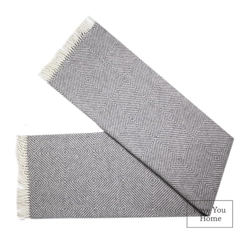 LYHome Coperta in Lana Merinos - Copriletto Plaid per Letto Divano, Singolo Una Piazza e Mezza Matrimoniale, Coperte Per Invernale Estiva Morbida Calda e Grande (140x200 cm, Grigio - Bianco Rombi)