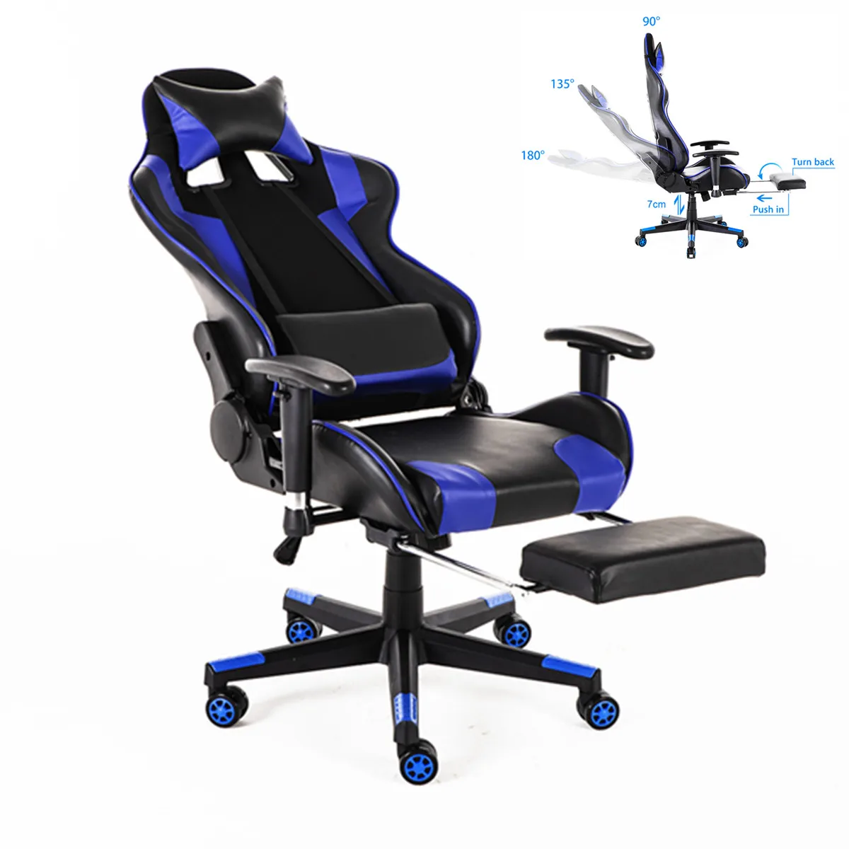 180° Lying Footrest Boss Office Chair Gaming Racing Chair Leather Ergonomic Computer Internet Cafe Chair Reclining Lounge Chair