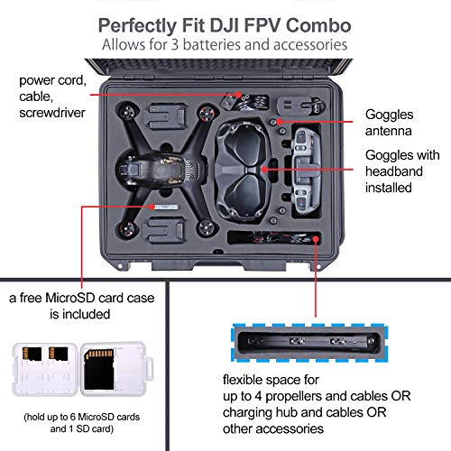 Adatto per DJI FPV drone, FPV Goggles, fino a 3 batterie, Radiocomando, caricabatterie, stazione di ricarica della batteria, fino a 8 eliche, cavi e altri accessori nel Combo. [Controller di movimento e Parte superiore della scocca di DJI FPV non possono adattarsi] ★★★ Una custodia per scheda MicroSD GRATUITA è inclusa.