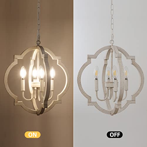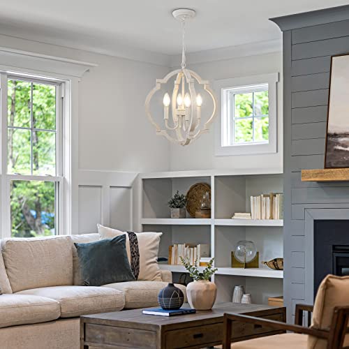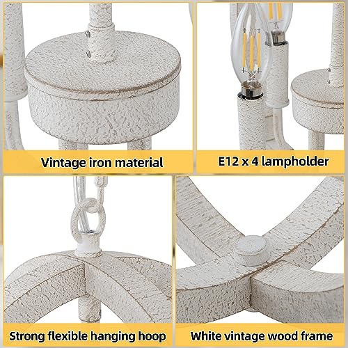 LynPon Lampadario a 4 luci in Legno Bianco Lampadario Rustico Francese a Sospensione Classico Antico per Sala da Pranzo Ingresso Camera da Letto Soggiorno Cucina