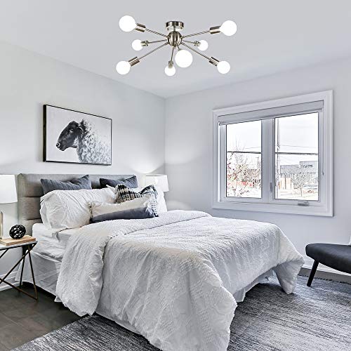 LynPon Modern Sputnik Plafoniera 8-Luce Nichel Lampada Argento Lampadario Camera da Letto Cromo illuminazione per soggiorno Cucina Bar Ristorante
