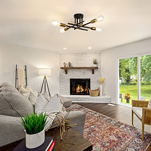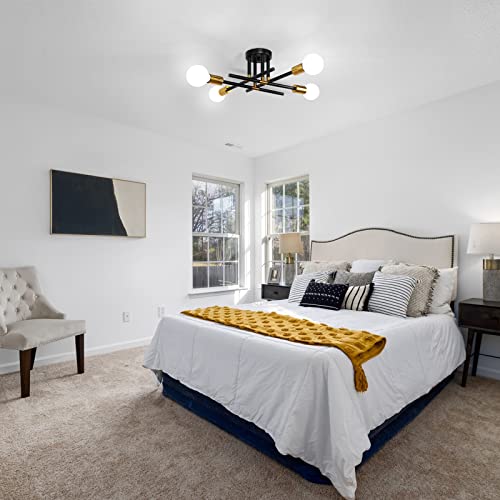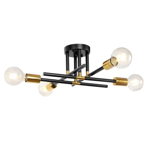 LynPon Plafoniere vintage Sputnik, plafoniere moderne a 4 luci nere e dorate, lampada da soffitto a semi-incasso per camera da letto, soggiorno, cucina, isola