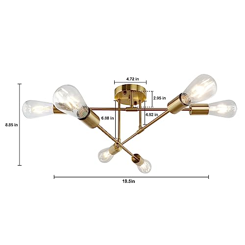 LynPon Gold Sputnik Plafoniera a 6 luci a bracci regolabili in ottone moderno Lampadario a sospensione Illuminazione industriale per camera da letto Soggiorno Sala da pranzo