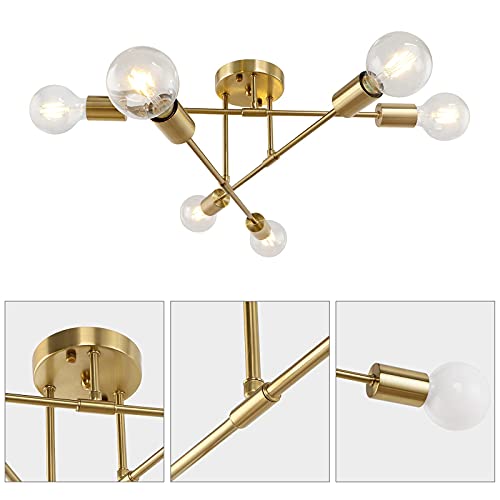 Regolazione multi-angolo Questa plafoniera Gold Sputnik dispone di 6 bracci di luce girevoli che possono essere regolati liberamente in quasi ogni angolazione per adattarsi al tuo stile di decorazione preferito