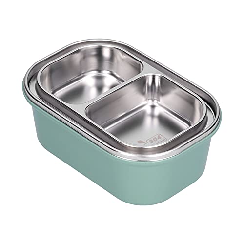 Lyrlody 1,2 L Lunch Box Termico con 2 Scomparti e Posate in Acciaio Inox Bento Box a 2 Strati Contenitore Porta Pranzo Ermetico Portatile per Adulti e Bambini 20 x 14 x 8 cm(Verde)