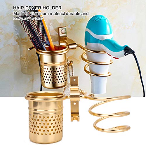 Lyrlody Porta-Asciugacapelli con Portaoggetti in Alluminio Supporto Asciugacapelli da Parete Porta Phone da Muro con Viti di Fissaggio per Asciugacapelli, Piastra per Capelli(Oro)