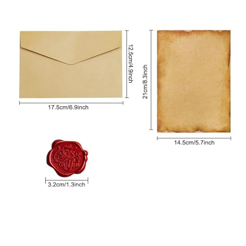 LYSAIMG 42Pezzi Vintage Carta da Lettere con Busta,Stampabile Carta da Lettere A5,12 Buste di Carta,18 Carta Vintage Carta da Lettere e 12 Adesivo Sigilli di Cera