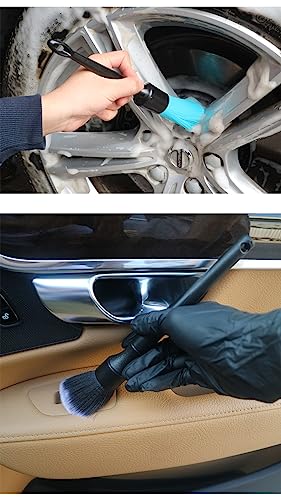 LYSAIMG 2 Pezzi Pennello Pulizia Auto,Nero Pennello Pulizia Auto,Spazzole per Pulizia di Dettagli Auto,per Lavaggio Cruscotto,Motore,Interni e Esterni la Manutenzione e la Pulizia