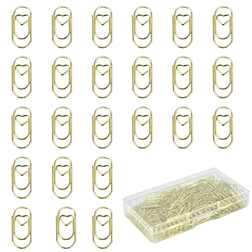 LYTIVAGEN 150 Pezzi Graffette Metalliche da Ufficio Mini Graffetta a Forma di Cuore d'Oro Graffetta per Fogli Carina Graffette Carta Oro Graffetta Clip per Carta, Documento, Fattura e Segnalibro