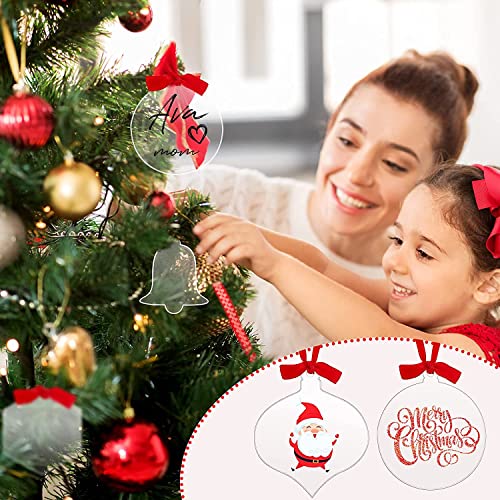 LYTIVAGEN 32 Pezzi Set di Ornamenti di Natale in Acrilico Trasparente con Nastro Rosso Dischi Acrilici Portachiavi Trasparente Vuoti Ciondoli Natalizi per Etichetta Regalo, Artigianato Fai-da-Te