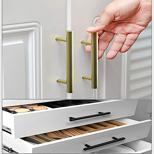 Lyualma Hysstore 6 Pezzi Maniglie per Mobili 128 mm T Forma Maniglie per Mobili da Cucina Maniglie per Mobili da Cassetti in Alluminio per Decorazioni per l'home,Office - D'oro