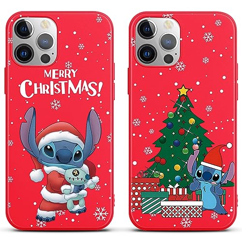 LYUBFDC [2 pezzi Natale Custodia per Xiaomi Redmi Note 9 Pro/Note 9S 4G 6,67", Christmas Cartoon Modello Stitch Silicone Cover,Morbida TPU Antiurto Case con Albero di Natale Disegno,Rosso 01