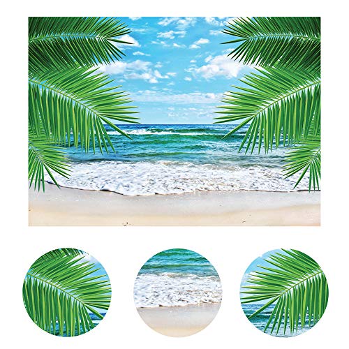 LYWYGG 7x5FT Sfondo Spiaggia Tropicale Vinile Palme Sfondo Cielo Blu Per Fotografia Decorazione Di Nozze Sfondo Fotografico Sfondo Spiaggia CP-7