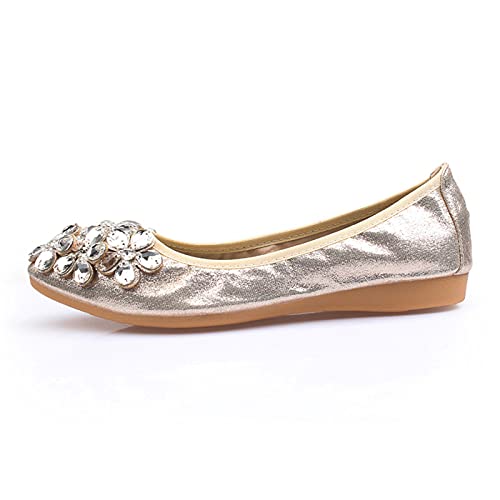 LYXIANG Scarpe da Donna Dolly, Strass Scarpe Singole Donne Primavera e Autunno Scarpe Piatte Scarpe da Donna Scarpe da Donna Scarpe da Donna saltando Scarpe da Ballo,d'oro,42