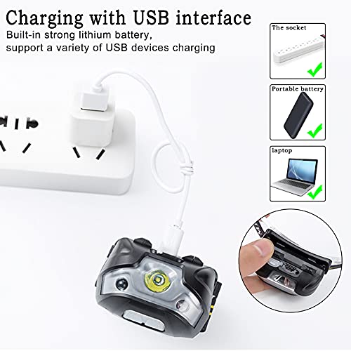 LYYDAN Lampada Frontale, Lampada Frontale USB Ricaricabile a LED Lampada Frontale IPX4 Impermeabile con Sistema di induzione Intelligente e 3 modalità di Illuminazione per Pesca, Corsa, Campeggio