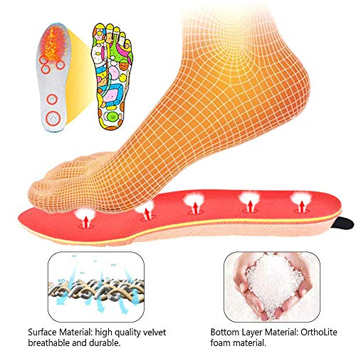 ▲ Solette riscaldabili: mantengono i piedi caldi quando fa freddo - distribuzione uniforme del calore per una circolazione sanguigna ottimale nei piedi.Queste solette riscaldate con un design sottile per la massima flessibilità distribuiscono il calore in modo uniforme sulla superficie del substrato. non solo protegge i tuoi piedi dagli inverni freddi, ma favorisce anche la circolazione sanguigna.