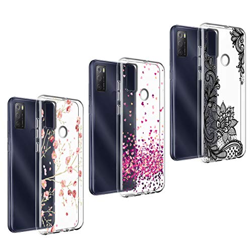 LYZXMY Cover per Alcatel 1S 2021 (6.52") [3 Pezzi] Trasparente Morbida Silicone Case TPU Shell Ultra Sottile Protettivo Copertura Custodia, Love + Fiore Rosso + Fiore Nero
