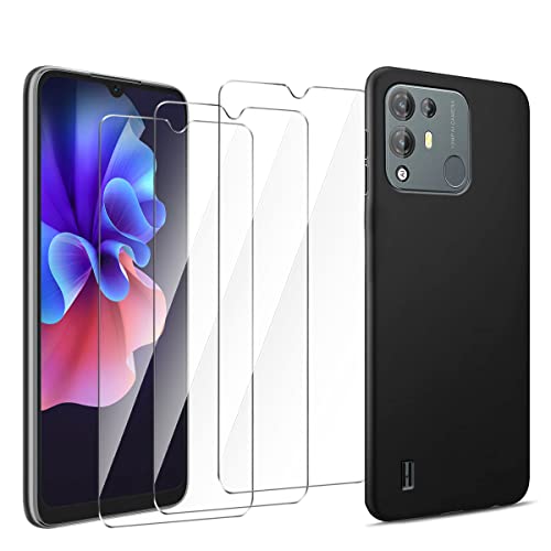 Cover silicone per Blackview A55 Pro 6.53" di neroTPU con 3 Vetro Pellicola, infrangibile, anti-scoppio, resistere impronte digitali e sudore rivestimento olio.