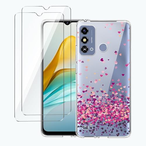 LYZXMY Cover per ZTE Blade A53(6.52") TrasparenteCustodia + 2 Pezzi Pellicola Protettiva in Vetro Temperato, Ultra Sottile in Silicone Protettivo Bumper TPU Morbido Gel Case-WM85