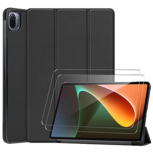 LYZXMY Custodia per Xiaomi Pad 5 / Xiaomi Pad 5 PRO/Xiaomi Pad 5 PRO 5G 11" Tablet 2021 + [2 Pezzi] Vetro Temperato - Supporto Tablet Guscio in Pelle Flip PU Case - Black