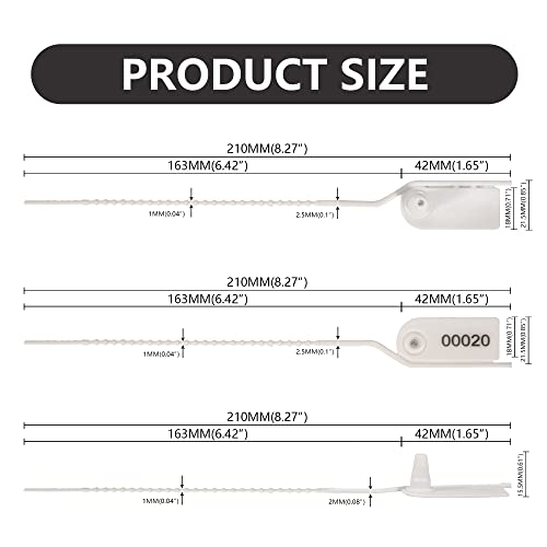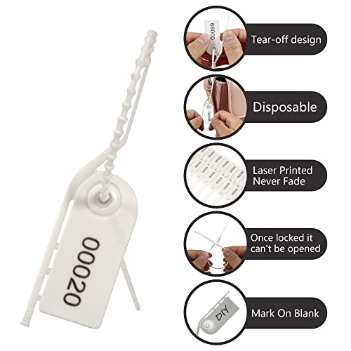 Lzbignun 1000 sigilli di sicurezza numerati in plastica con chiusura a strappo, linguetta di sicurezza per estintore (bianco)