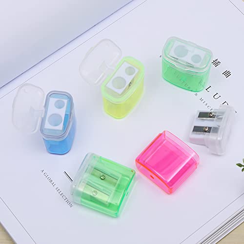 LZCXLZ 4 Pezzi Plastica Temperamatite Manuale, Temperino Doppio Foro Con Coperchio, Adatto Bambini, Studenti, Scuola, Casa, Aula, Forniture Per Ufficio, 4 Colori Assortiti