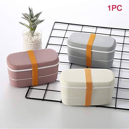 LZDseller01 School Lunch Bento Box - Contenitore per Il Pranzo a 2 Livelli, con Posate riutilizzabili, Rimovibile, Bianco, Taglia Unica