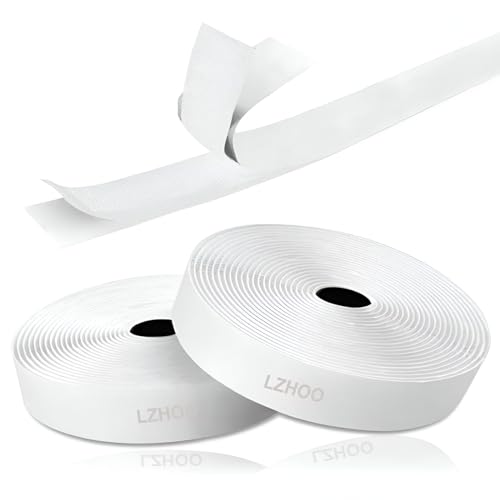 LZHOO Adesivo Nastro,Biadesivo,Set Strisce in Gancio e Anello Auto Adesive, Sper Adesivo, Adesivo 20mm Larghezza 5 Metri di Lunghezza Nastro Magico, Colore Bianco
