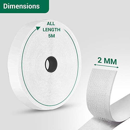 Ciascun rotolo di nastro velcro ha una lunghezza totale di 5 metri, larghezza 20mm ( 1 roll of self adhesive hook tape and 1 roll of self adhesive loop tape)