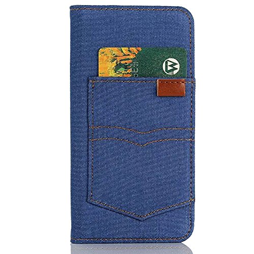 M-chi custodia protettiva Per Samsung Galaxy S7 Edge (5,5 pollici) a libro chiusura magnetica Retro Stile Crazy Horse modello PU pelle Wallet Case Flip Custodia Cover Custodia con supporto per Samsung Galaxy S7 Edge (5,5 pollici) Nero Cowboy Jeans Muster Hellblau-1