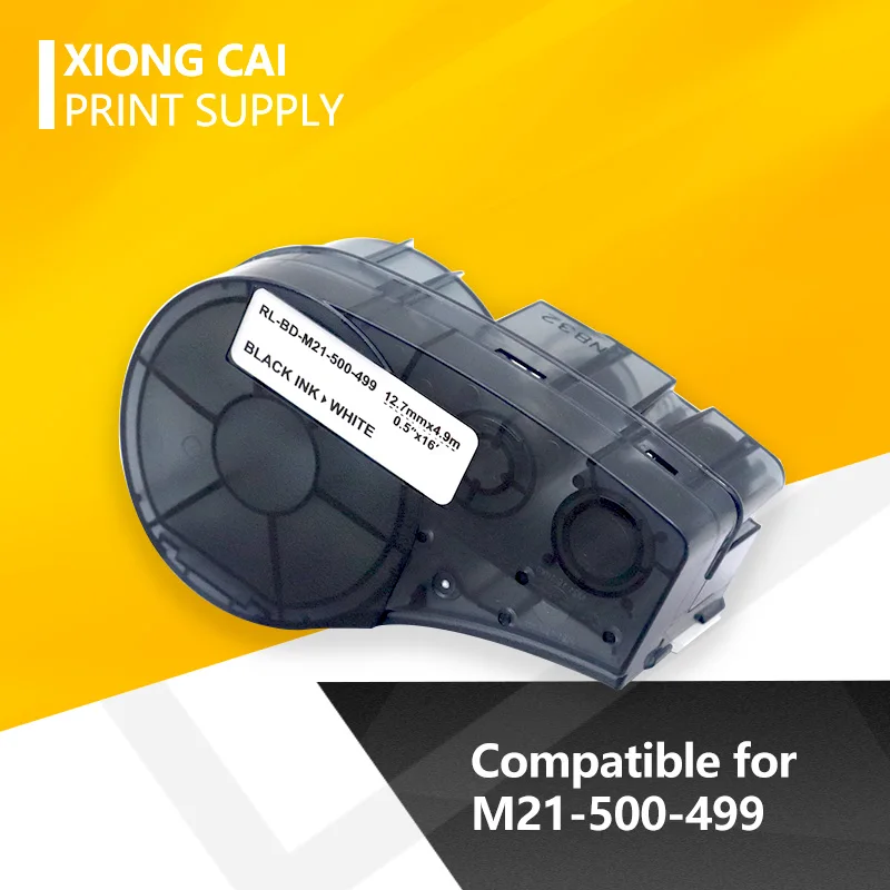 For M21-500-499 12.7mm Width Label Tape Black On White Compatible for BMP21 Plus ID Pal and LABPAL Label Printers