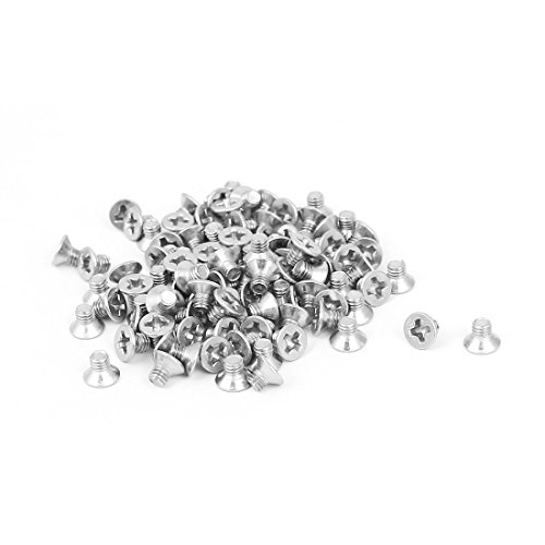 Viti M3x4mm Phillips piatto testa svasata argento tono 100pcs