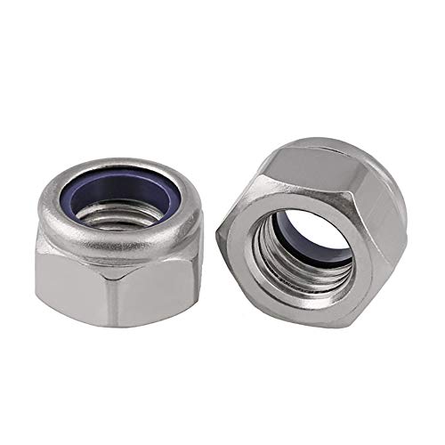 DUO ER M5-M12 Thread della Mano Sinistra Hex Nylon Inserire Il Dado Blocco 304 in Acciaio Inox Reverse Thread Esagonale Autobloccante Autobloccante Nyllock Size: M5(10pcs)