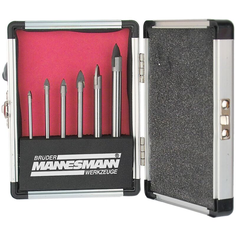 Set da 6 punte Brueder Mannesmann ideali per forare vetro, porcellana e terracotta. Il diametro in millimetri delle punte è: 3, 4, 5, 6, 8, 10. Viene consegnata in una cassetta di alluminio.