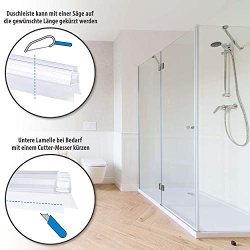 Utilizzo universale: ideale come guarnizione di ricambio per sostituire la guarnizione in gomma esistente. È possibile tagliare la guida per la guarnizione della doccia in loco con una sega Puk, un seghetto da traforo o un taglierino. Ogni striscia di tenuta è composta da due elementi: una barra profilata che viene montata sulla porta in vetro/porta a soffietto o parete divisoria della doccia e bordi in gomma morbida con eccellenti proprietà di tenuta