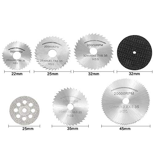 【PERSONALITÀ UNICA】- Gruppo dischi da taglio ha 3 dischi da taglio assortiti per 3 esigenze, mini lame HSS per legno e plastica / ruote da taglio diamantate per pietra / ruote da taglio in resina per metallo, può adattarsi per te di lavoro diverso.