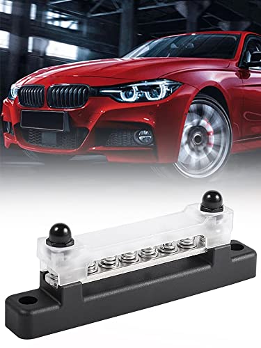 Maalr 6 Way Bus Bar Terminal Block 300 V AC/48 V DC 130 A AC/150 A DC Professional Power Distribution Block Bus Bar Durable Auto Marine Power Distribution Earthing Block with Cover for Car(