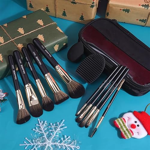 MAANGE 10 pennelli da trucco professionali da viaggio con custodia, fondotinta, Kabuki, fard, ombretto, con spugna per trucco e detergente per pennelli (nero)
