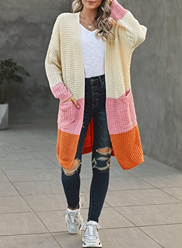 Maavoki Cardigan lungo da donna, oversize, a maniche lunghe, casual, con tasca, Z-rosa, XL