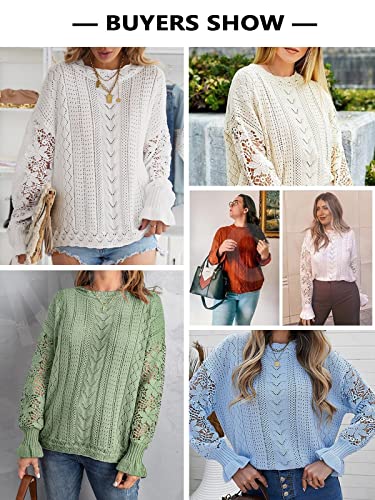 Maavoki Maglioni Donna Pizzo Camicie a Maniche Lunghe Girocollo Pullover Tinta Unita Top in Rete Patchwork Top