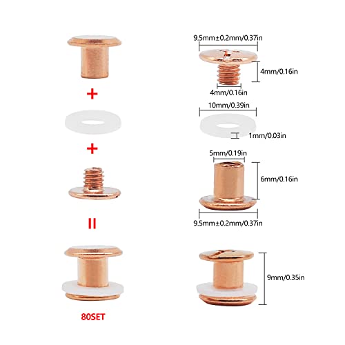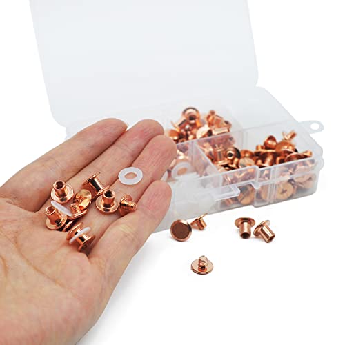 MABAHON 80 Set M5x6mm Chicago Binding Viti Testa Tonda Borchia Messaggi Chiodo Rivetto Chicago Pulsante per Album Libro Fai da te in pelle Artigianato Giacche Jeans, Oro Rosa