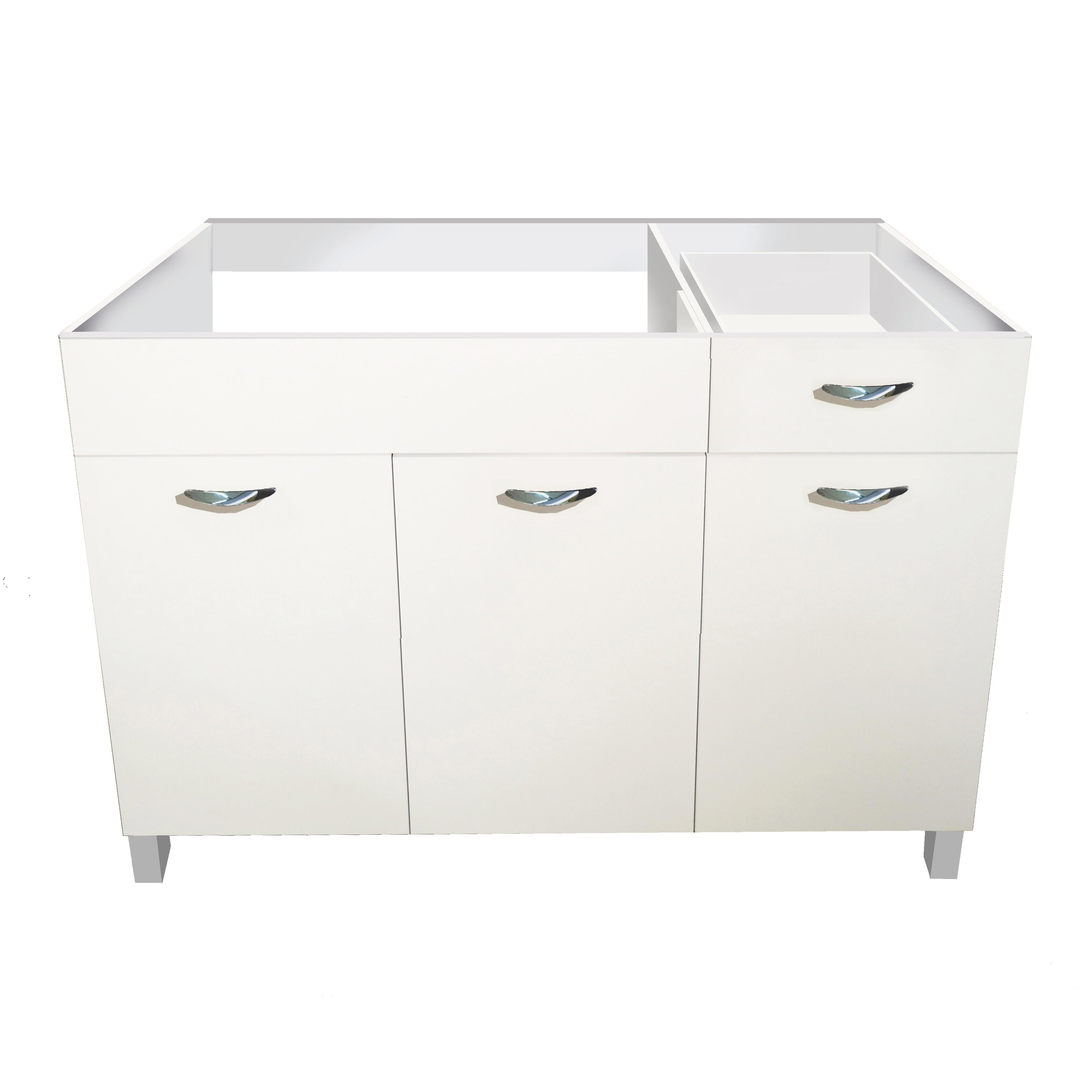 Sottolavello base con 3 ante + 1 cassetto, totalmente reversibile (il cassetto può essere montato sia a destra che a sinistra, in base alle proprie preferenze), colore bianco in finitura antigraffio, nobilitato da 18 cm con carta melaminica da 120 gr e bordato stesso. Mobile sottolavello, dotato di cassetto e 3 ante, collocabile in qualunque ambiente domestico.. Mobile sottolavello di facile montaggio, finitura del materiale anti-impronta e anti-graffio, bianco che non ingiallisce nel tempo ma rimane brillante, praticità dell'inserimento del cassetto estraibile.