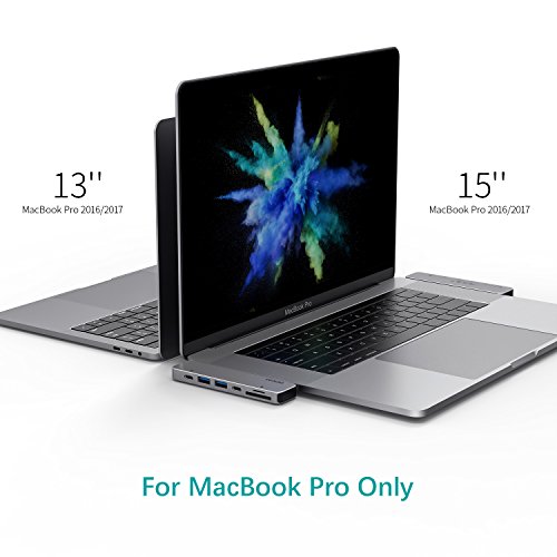 Design unico: Progettata specificamente per nuovo Macbook Pro da 2016/2017, design adatto a Apple accessori in alluminio spazzolato, il design facile da usare lo rende semplice da prendere Hub USB Type-C con voi ovunque.