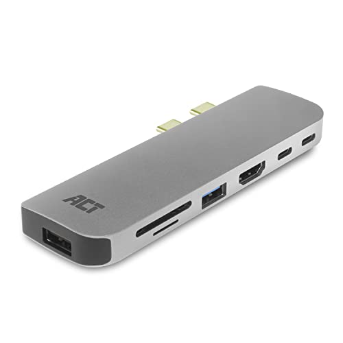 ACT Hub USB C 7 in 1 per MacBook, adattatore USB C con Thunderbolt 3 (100W PD), 4K HDMI, lettore di schede SD/TF, 2x USB, Ethernet - AC7044