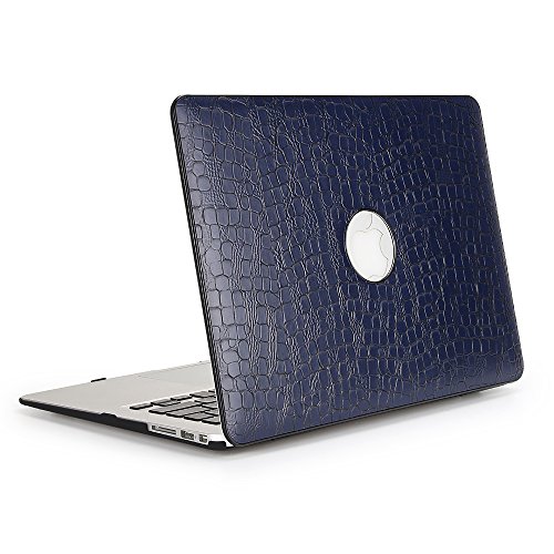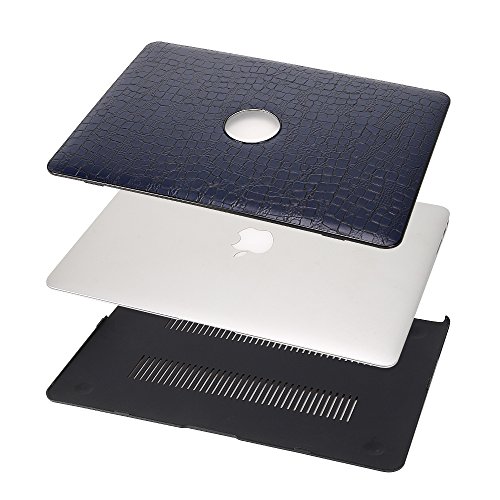 Macbook Custodia - dowswin Cover rigida con superficie in pelle [inclusive leathery posteriore con foro tondo] protezione perfetta per Apple Macbook Custodia... Dark Blue Air 13 Inch