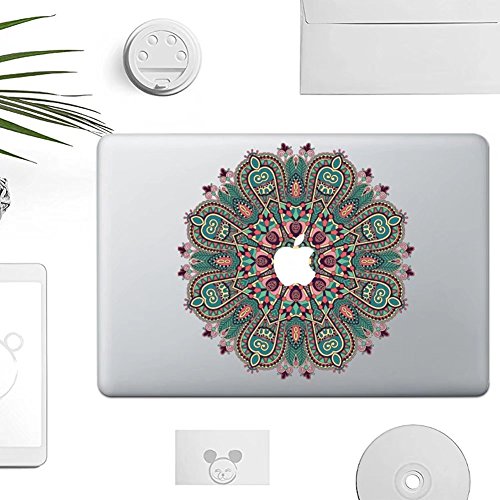 Macbook Decals, Round Peacock Maeco Removable Vinyl Decals Sticker Skin, Eco-friendly Oracal Waterproof Stickers for Apple MacBook 12 inch (A1534) Laptop with Glowing Logo.